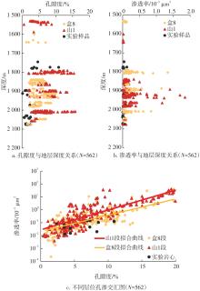 | 层位 | 样品编号 | 实验类别 | 深度/m | 孔隙度/% | 渗透率/10-3 μm2 |