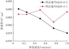 | 层位 | 样品编号 | 深度/m | 孔隙度/% | 渗透率/10-3 μm2 | 碱敏指数/% | 碱敏程度 |