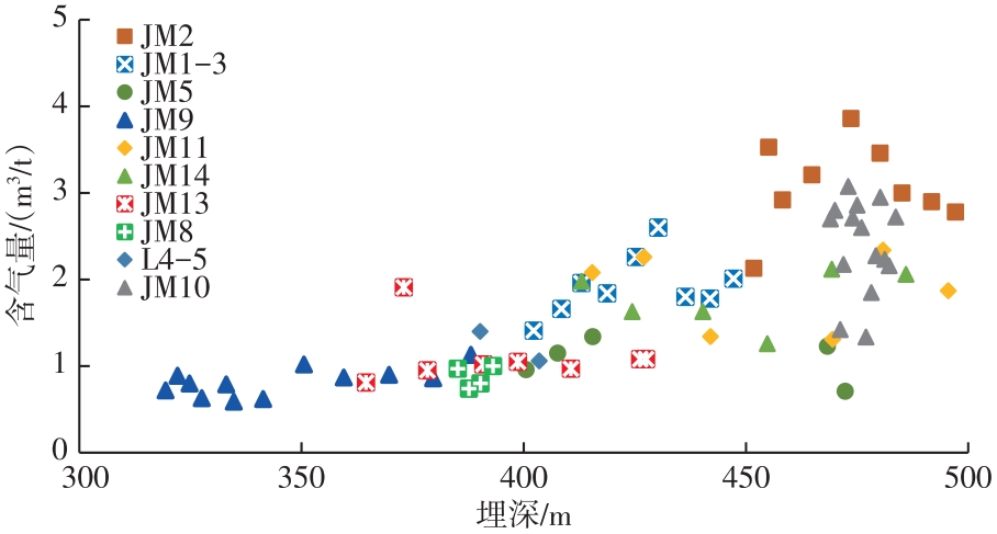 | Fig.3 Relationship between gas content and burial depth in Jiergalangtu block, Erlian Basin |